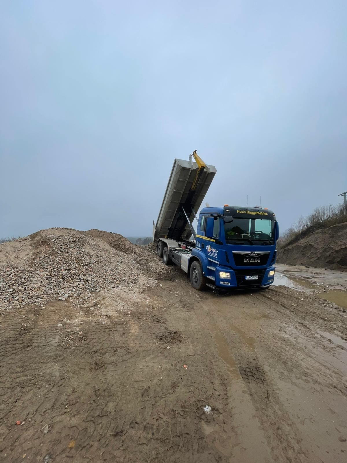 Den Transport von schüttbarem Gut wie Kies, Humus, Sand und anderen Erdmaterialien führen wir mit eigenen, modernen LKW aus. Wir verfüllen, planieren und verdichten die gewünschten Flächen.